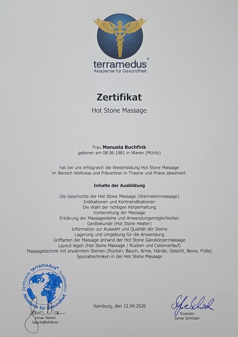 Mit einem Massagegutschein schenkst du, Wohlbefinden und neue Energie.